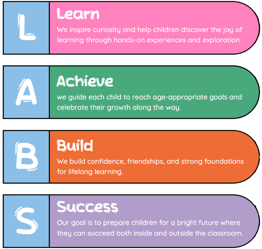 We envision a place where every child feels valued, supported, and inspired to explore the world around them. Through a dynamic and innovative curriculum, we aim to ignite the curiosity and creativity within each child, fostering a love for learning that lasts a lifetime.equips children with the skills and confidence to shine brightly in school and in life.